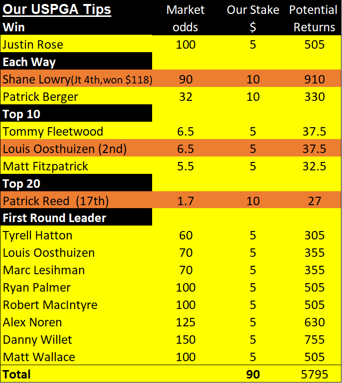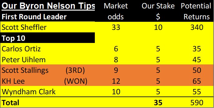 Below you can see the results of our weekly golf betting tips for the year to date, winning bets are highlighted in orange.