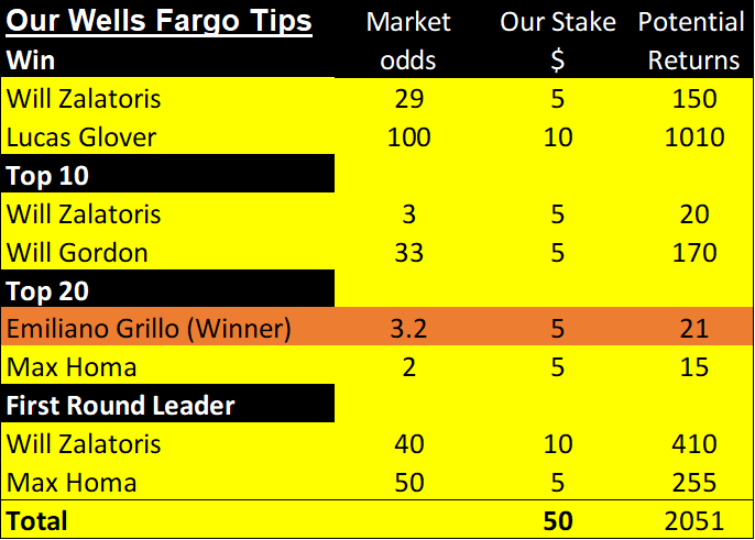 Overall, what an event for our week’s golf betting tips at the Players. Firstly, we got the First Round Leader (Sergio), then Berger and Kim in the top 10 and finally, Cam Smith in the top 20.