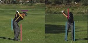 - Place a line over your head to make sure you are not ‘standing up’ in your backswing and that you dip below the line at the start of your downswing/early transition (the ‘Rory’ move)